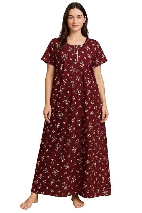 - Latest Design: Can be worn as a comfortable nightgown or casual maxi dress, suitable for lounging and sleeping. Flattering Maxi-Frock Cut – Flowing 54 inch ankle-length A-line women nighty cotton appeal