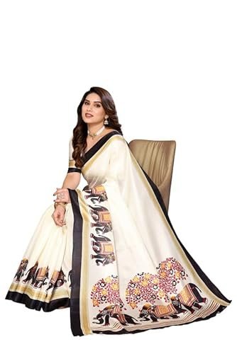 Kjs Women’s Khaadhi Cotton Blended Kalamkari Printed Saree | Beautiful Blend of Tradition and Style | Printed Saree with Running Blouse | Wgaja P